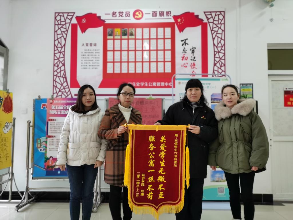 “真心服务为学生,热情关怀暖人心”“关爱学生无微不至,服务公寓一丝不苟”及“尽职尽责排忧解难,关爱学生无微不至”等锦旗上话语,真诚道出学院和学生对宿管阿姨的感恩之心,感谢她们的辛苦付出以及对工作的认真负责。