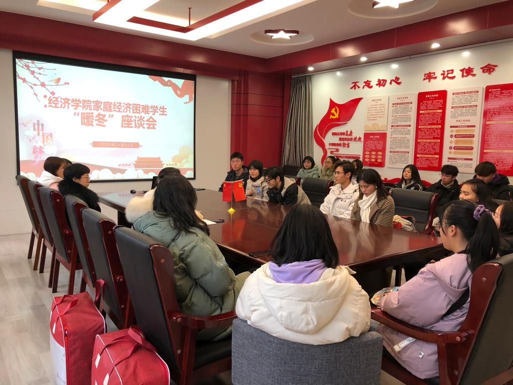 为深入了解必赢官网家庭经济困难学生学习生活现况及实际困难,进一步加强和改进学院资助管理工作,12月23日下午,必赢官网在德经楼329室举行家庭经济困难学生暖冬座谈会,党委副书记袁怡琨、学工办主任尹海燕、2020级辅导员陶海韵和全体2020级家庭经济困难学生参加了此次座谈会。