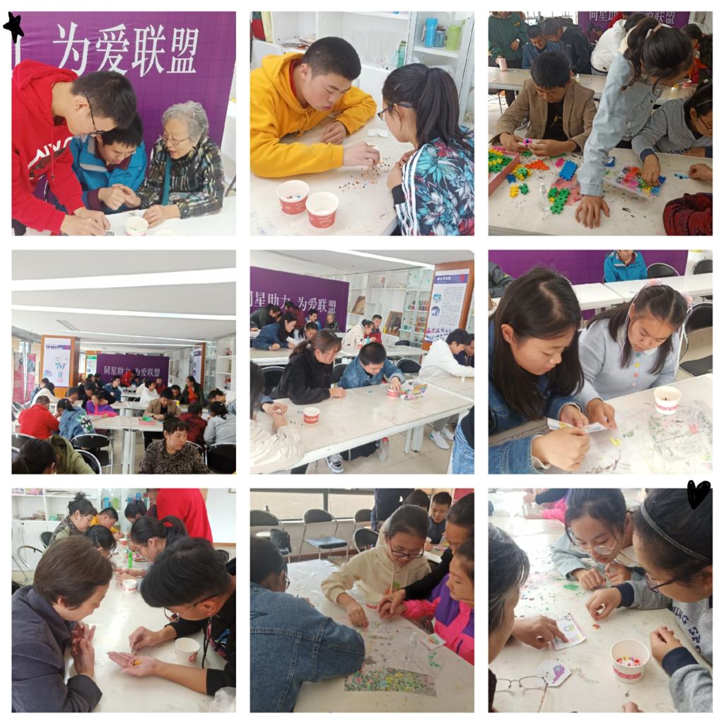几轮游戏结束后,开启了手工DIY课程。志愿服务者们准备了水雾手工DIY魔法珠,学员们都能够在志愿者的指导下,发挥想象力,按照模板的要求和样子做出小挂件。一上午的陪伴,学员和志愿者已经形成了深厚的友谊。