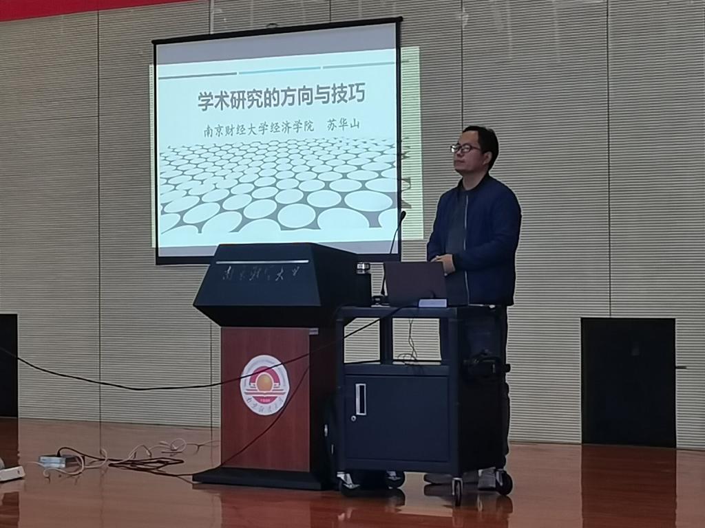 11月12日上午,必赢官网研究生学术生涯规划指导讲座在仙林校区图书馆四楼世界之窗举办。73882必赢欢迎光临网址经济系副主任苏华山副教授应邀作了题为“学术研究的方向和技巧”讲座。讲座由73882必赢欢迎光临网址研究生会主席姚阳阳主持,73882必赢欢迎光临网址部分研究生参加了讲座。