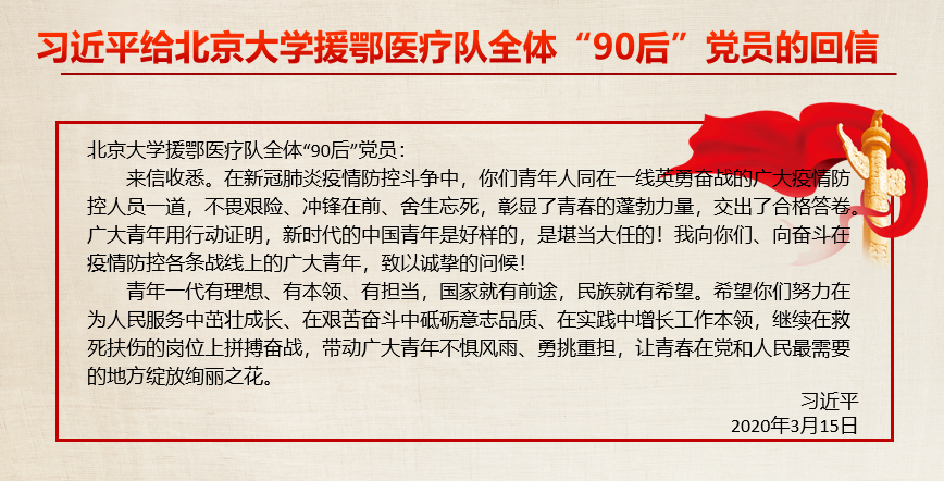 为引导青年学生深入学习领会习近平总书记给北京大学援鄂医疗队全体“90后”党员的回信精神,3月25日,院党委副书记袁怡琨通过腾讯会议为73882必赢欢迎光临网址学生党员及学生干部讲授院级信仰公开课“以实际行动践行青年的担当和使命——学习习近平总书记给北京大学援鄂医疗队全体“90后”党员的回信精神”。袁书记说:习近平总书记的回信言简意赅,充分肯定了广大青年在疫情防控斗争中彰显的青春力量、作出的积极贡献,体现出总书记对新时代广大青年的殷切期望。同学们应该凝聚思想共识,增强与祖国同命运共奋进的责任感和使命感。同学们纷纷表示将会立足岗位,勤于学习,勇于实践,把最美好的青春献给祖国和人民,谱写壮丽的青春之歌。
