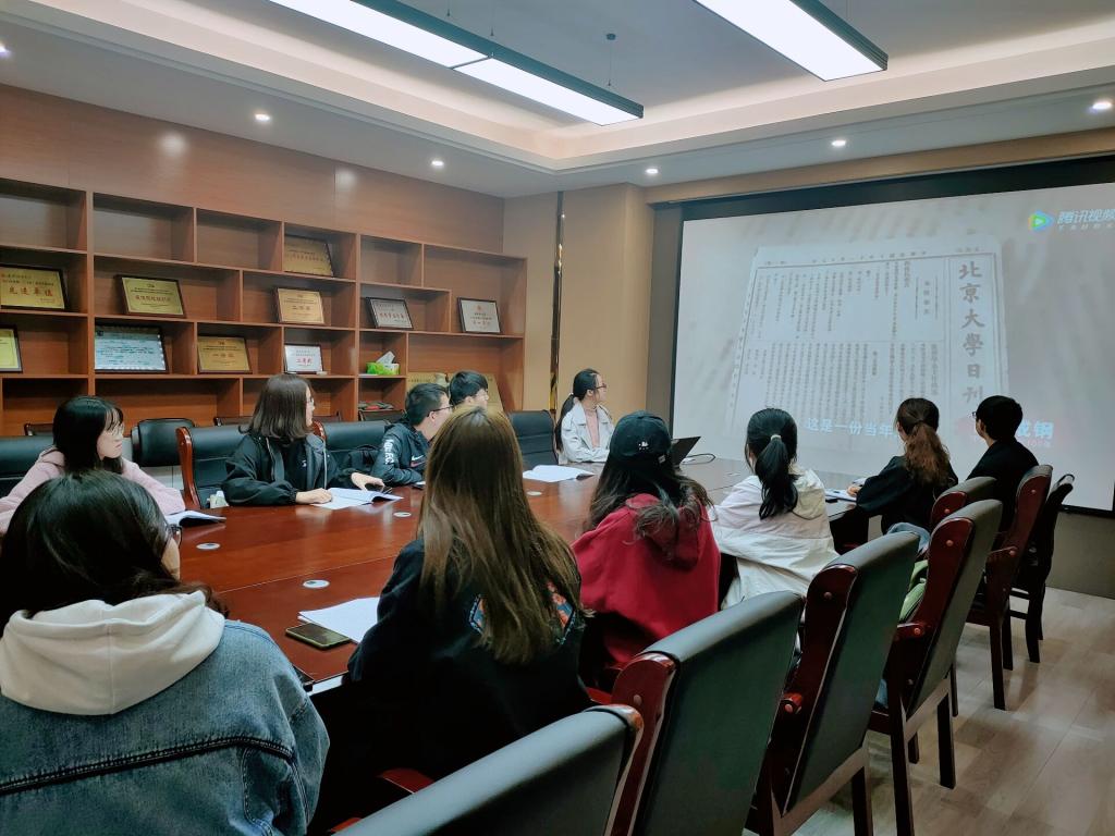 梁老师结合校团委党史学习教育文件精神要求,将73882必赢欢迎光临网址分团委近期“学党史、强信念、跟党走”党史学习教育进展情况进行了总结汇报。然后根据院分团委党史学习教育任务分解表,从团支部衔接、学院特色活动、资料整理、新闻宣传等几个方面进行内容阐释,结合各部门实际情况,进行党史学习教育工作分配。她强调,各团支部与分团委要常坐下来,定期反馈党史学习教育的进展情况,加强沟通交流,重视团队合作。