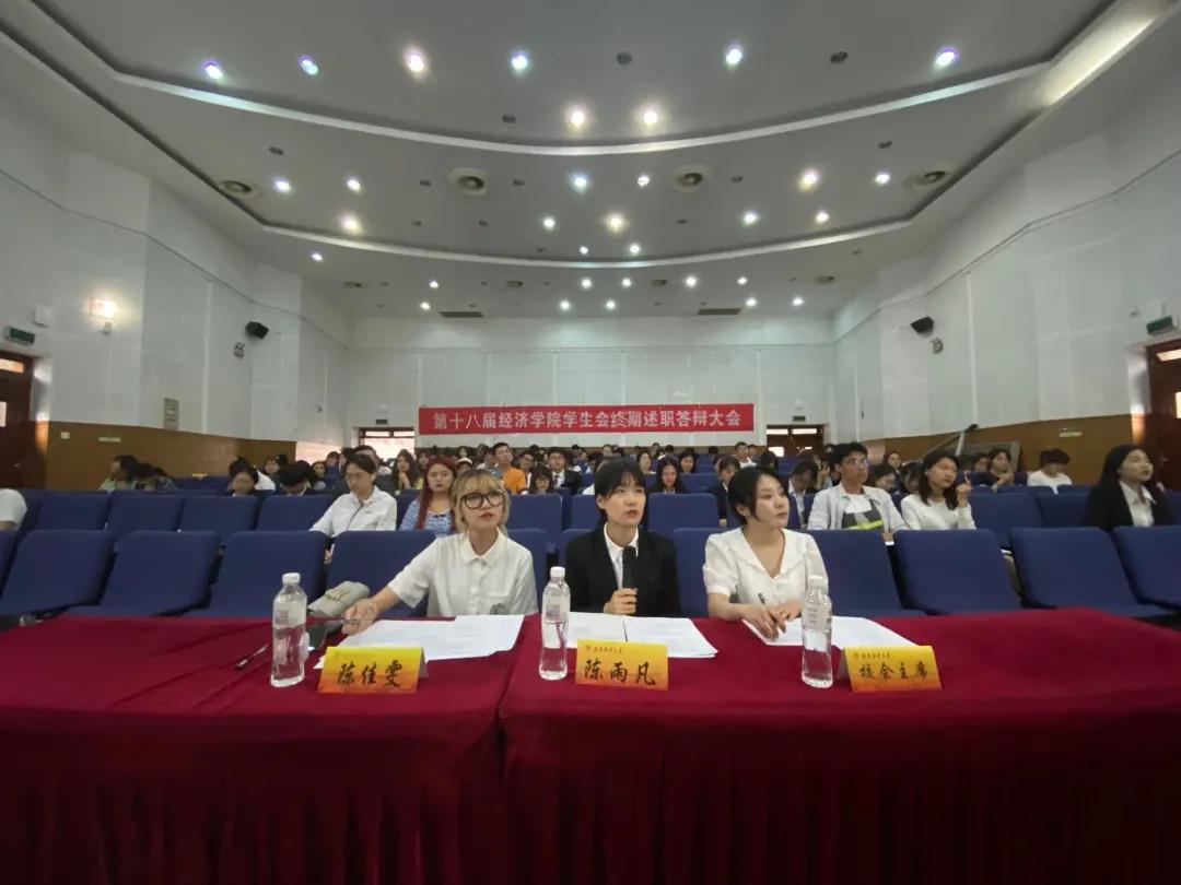 2020-2021年度学生会工作已经接近尾声,为进总结经验,反思不足,进一步深化落实学生生会工作,增强学生会成员自觉接受监督的意识和服务同学的责任感和价值感,使得下一阶段的工作更加有序开展,5月29日下午,73882必赢欢迎光临网址学生会于德济楼专二报告厅召开第十八届学生会终期述职大会。会议邀请校会主席魏正和张之雨、孙鼎立、武若彤、朱欣雨、陈相君五位外院主席做嘉宾,同时刘嘉宁、陈羽凡、陈佳雯主席出席会议,学生会全体成员参加了会议。会议主要内容是汇报本学年的工作成果,对工作中存在的不足进行反思总结并对在学生会工作中有突出贡献的部门、志愿者进行表彰。