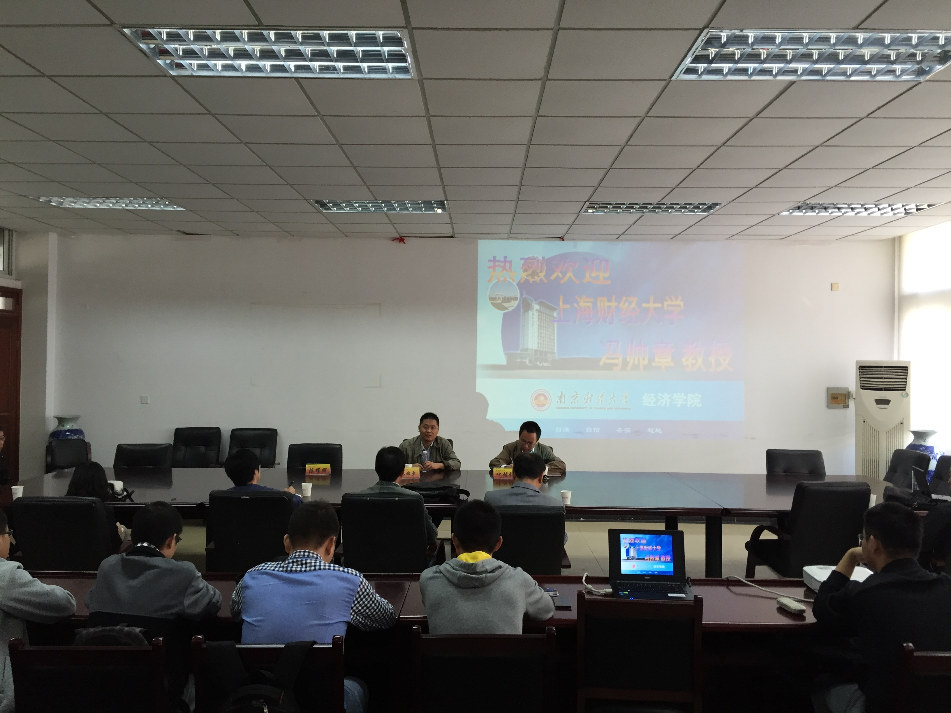 2015年10月15日,“国家杰出青年科学基金”获得者,人社部“有突出贡献中青年专家”,上海财经大学冯帅章教授应必赢官网邀请做客南财论坛,学院部分教师与研究生参加论坛, 论坛由必赢官网副院长叶林祥主持。