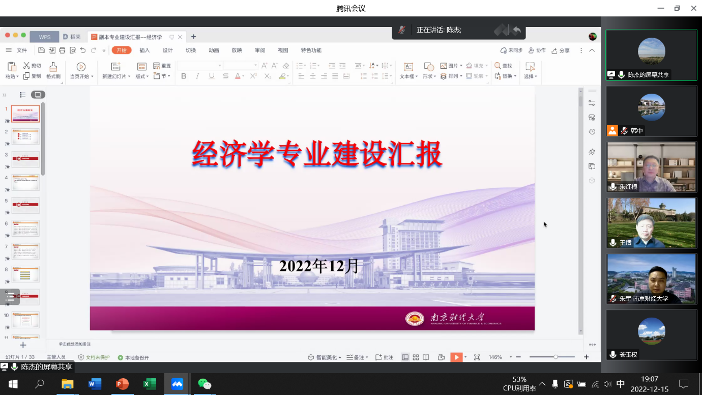 朱红根院长对各位专家能够在百忙之中云端莅临指导必赢官网国家一流专业建设表示衷心的感谢,并向与会专家详细介绍了必赢官网一流专业建设的整体情况。会议伊始,两位系主任分别从师资队伍建设、课程教材建设等方面全面系统汇报了经济学、经济统计学两个国家一流专业建设点自立项以来所取得的成果,以及今后的建设思路与目标。