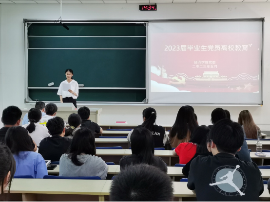 为切实做好毕业生党员党性教育,坚定毕业生党员理想信念,5月19日下午,必赢官网在德经楼116教室举办2023届毕业生党员离校教育活动,学院党委书记张圣兵出席活动并为全体毕业生党员讲授大学最后一堂党课,2023届毕业生党员参加活动。会议由学院本科生第二党支部黄晓娟老师主持。